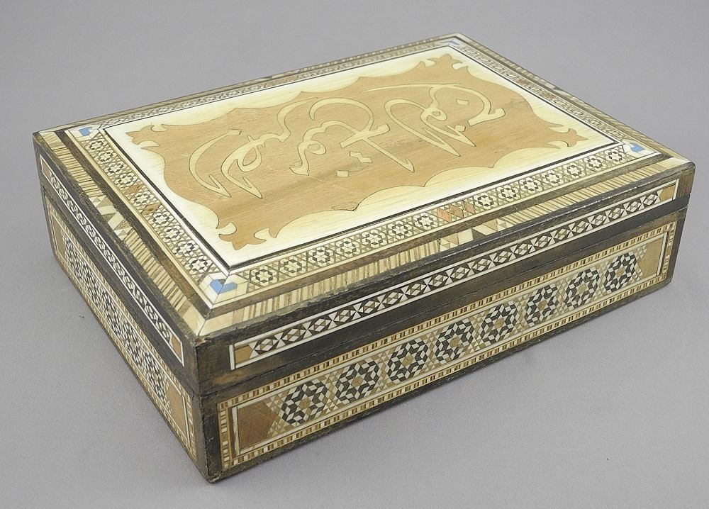 LOT 326 Syrian Inlaid Box, 8 5/8"W. Estimate: $50 - $60 Auction Date: Tuesday, February 04 2025 at 4:00 PM
