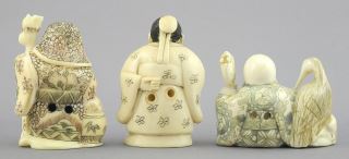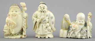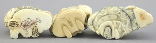 Three signed Japanese Netsuke, 1 1/2 - 2"h, NO EXPORT.