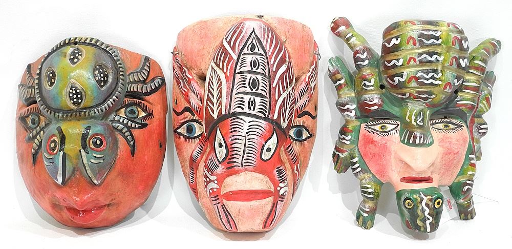 Three Nahua Oaxaca Mexico Human & Spider Motif Masks, Approximately 10"h.