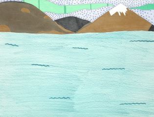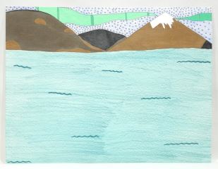 Pen & Crayon Attributed to Susie (Inuit), 11 5/8" x 15 1/8", "Mountainous Landscape".