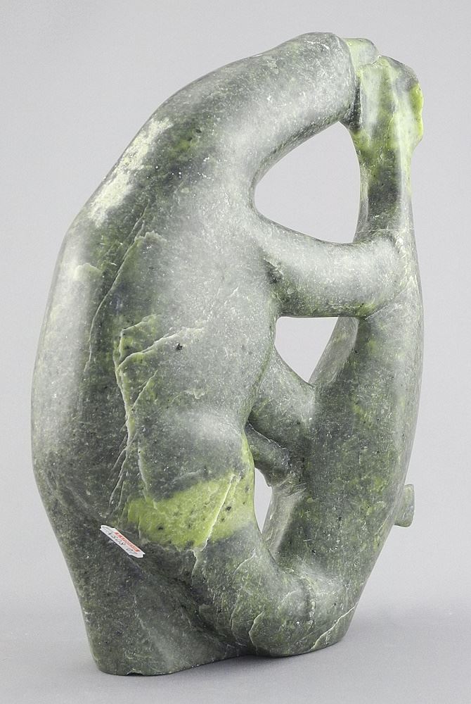 11"h Unsigned Inuit Greenstone Sculpture, "Bear Feeding on Prey".
