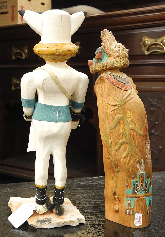 Two Kachina Dolls, One signed Wally, 13 5/8 & 12 1/2".