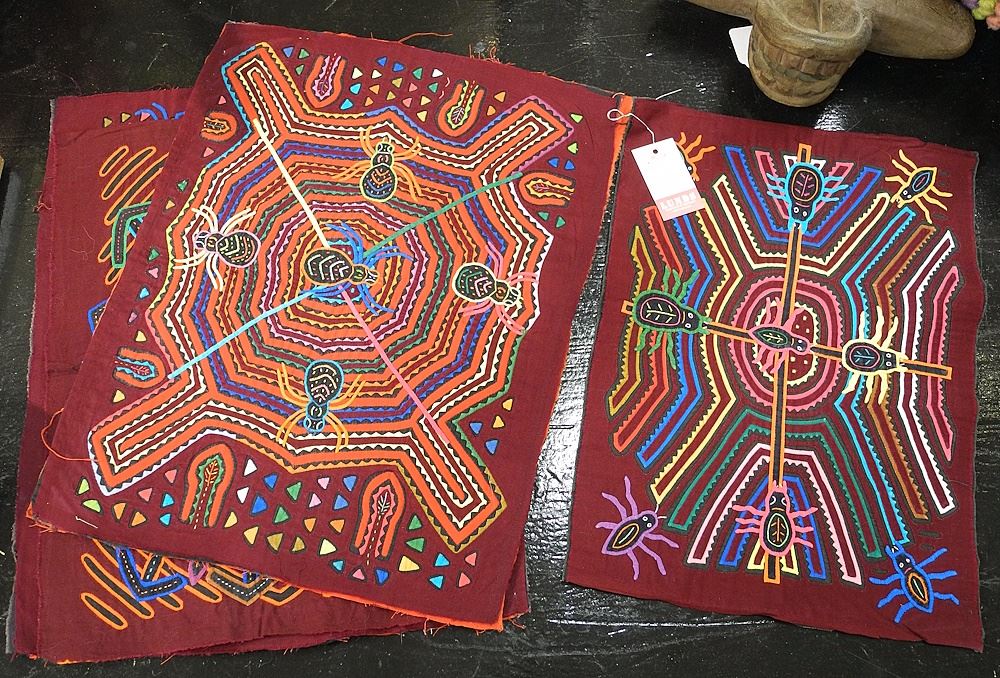 Four Kuna Panama Spider Motif Molas, Approximately 13 x 18".