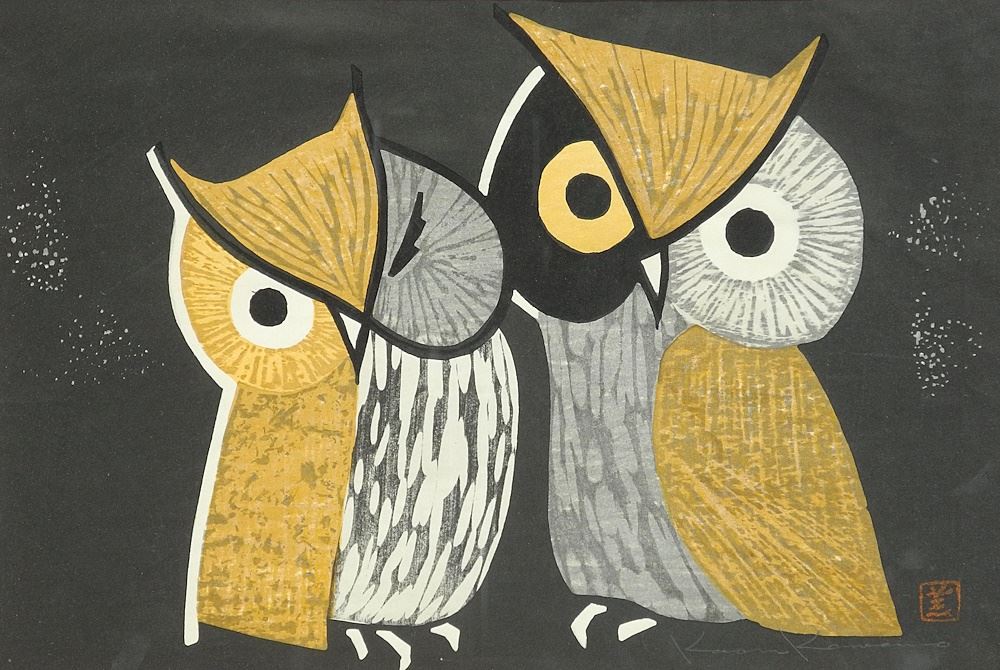 LOT 236 Woodblock Print signed Kaoru Kawano, 9 5/8" x 14 1/4", "Three Eyes". Estimate: $200 - $300 Sold For: $250 Auction Date: Tuesday, February 04 2025 at 4:00 PM