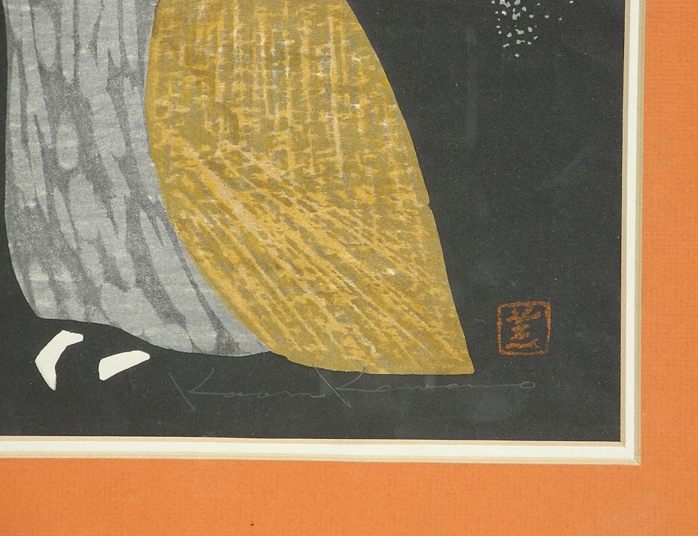 Woodblock Print signed Kaoru Kawano, 9 5/8" x 14 1/4", "Three Eyes".