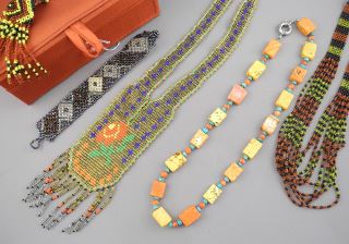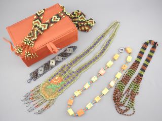Collection of Beaded Necklaces & Dyed Turquoise Necklace, Includes Red Box.