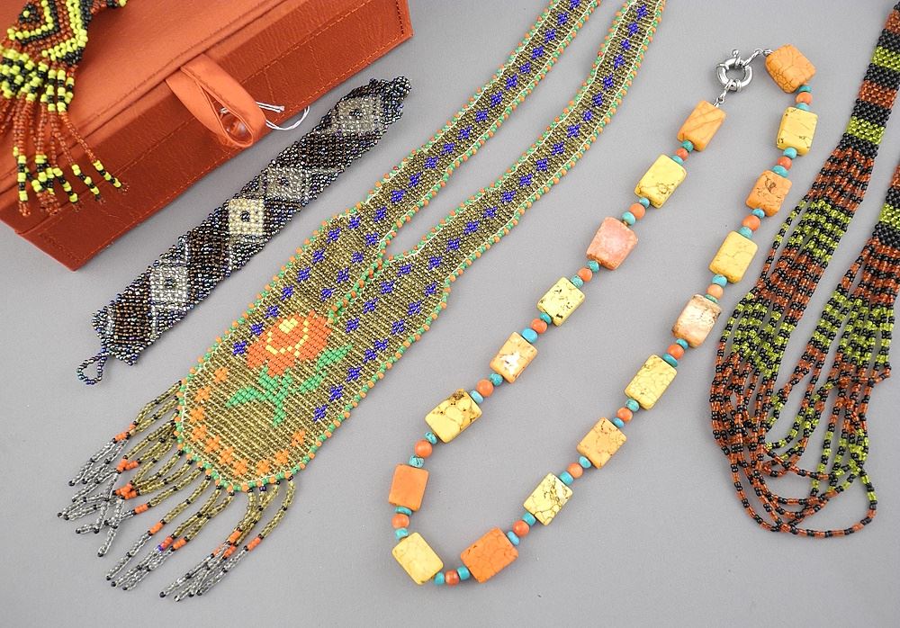 LOT 145 Collection of Beaded Necklaces & Dyed Turquoise Necklace, Includes Red Box. Estimate: $50 - $60 Sold For: $35 Auction Date: Tuesday, February 04 2025 at 4:00 PM