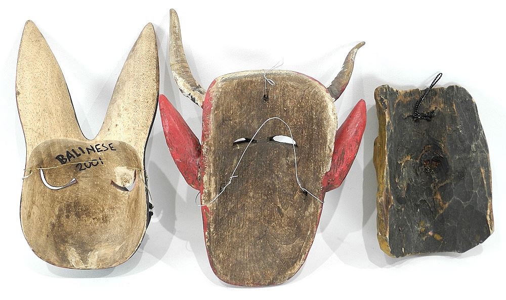 3 Ethnic Masks: 2 Latin American/ 1 Balinese, 8" - 11"h.