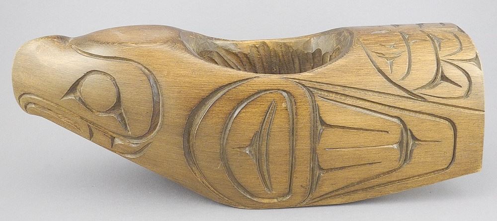 LOT 111 Squamish Carving signed Stephen Charlie, 11 3/4"L, "Eagle Bowl". Estimate: $100 - $200 Auction Date: Tuesday, February 04 2025 at 4:00 PM