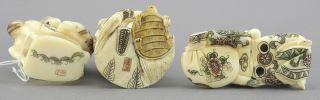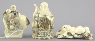 LOT 323 Three signed Japanese Netsuke, 1 7/8" - 2"h, NO EXPORT. Estimate: $60 - $100 Sold For: $150 Auction Date: Tuesday, February 04 2025 at 4:00 PM