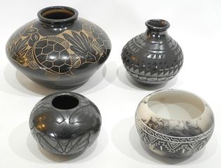 LOT 135 Four Santa Clara/Dine/Etched Pottery Vessels, 2 7/8 - 4 7/8"h. Estimate: $50 - $60 Sold For: $90 Auction Date: Tuesday, February 04 2025 at 4:00 PM