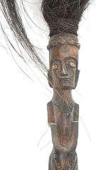 West African Carved Wood Staff (68") & Wood Drum, 22"L.