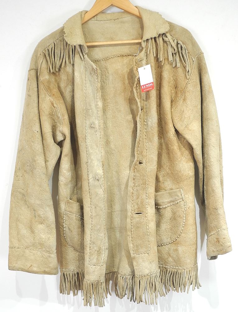 LOT 55 Late 19th/Early 20th C. Buckskin Gents Jacket, Size Medium. Estimate: $100 - $200 Sold For: $200 Auction Date: Tuesday, June 03 2025 at 4:00 PM