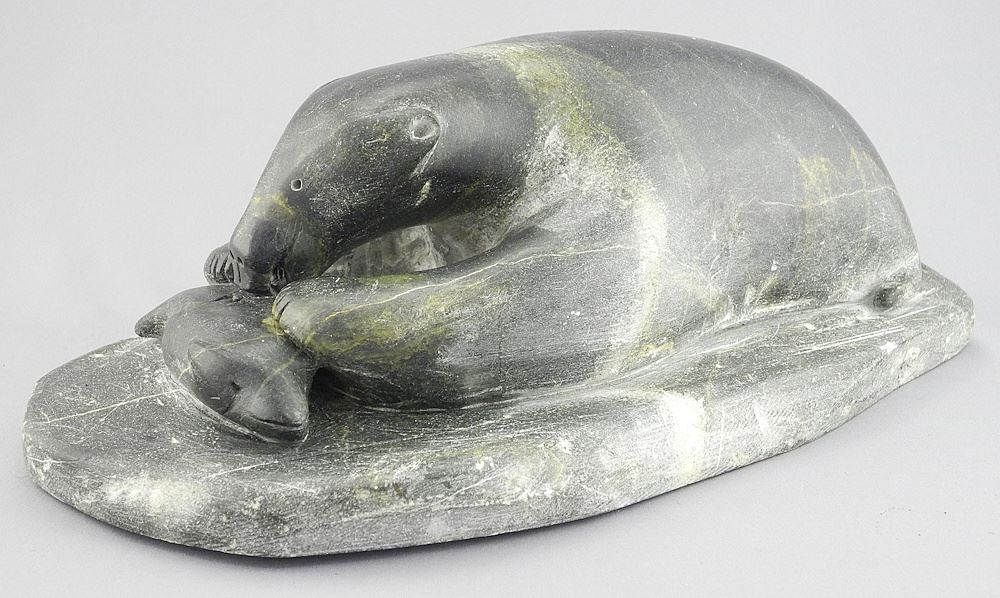 LOT 61 Unsigned Inuit Stone Sculpture, 3 1/2 x 12 x 5 3/4", "Bear Eating Seal". Estimate: $300 - $400 Sold For: $300 Auction Date: Tuesday, June 03 2025 at 4:00 PM