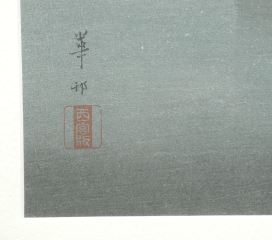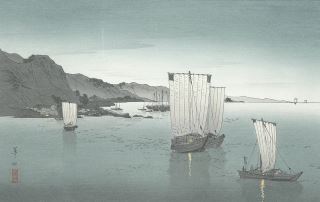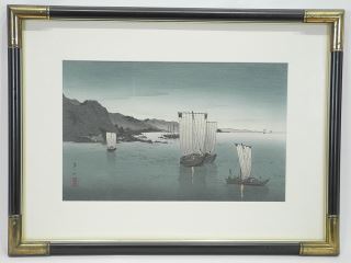 LOT 32 Japanese Woodblock Print by Kaho, 8 3/8 x 13 1/2", "Fishing Boats at Dusk". Estimate: $100 - $200 Sold For: $250 Auction Date: Tuesday, June 03 2025 at 4:00 PM