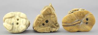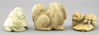 LOT 131 Three Japanese Netsuke: Turtle Subjects, 5/8 - 1 1/8" High, 58.5 Grams, No Export. Estimate: $100 - $150 Sold For: $120 Auction Date: Tuesday, June 03 2025 at 4:00 PM