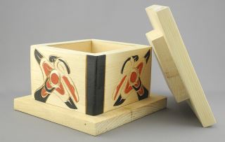 LOT 157 Kwagiulth Bentwood-Style Hummingbird Box signed Sarah Robertson, 5 x 7 1/4 x 7 1/4". Estimate: $100 - $150 Sold For: $70 Auction Date: Tuesday, June 03 2025 at 4:00 PM