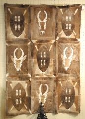 LOT 254 South African Kruger Park Skin Wall Hanging, "Shields & Antelopes", 66"h, NO EXPORT. Estimate: $80 - $100 Auction Date: Tuesday, July 29 2025 at 4:00 PM