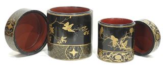 LOT 25 Two Chinese Cylindrical Lacquer Canisters & Sancai Lion Dogs. Estimate: $50 - $60 Auction Date: Tuesday, July 29 2025 at 4:00 PM