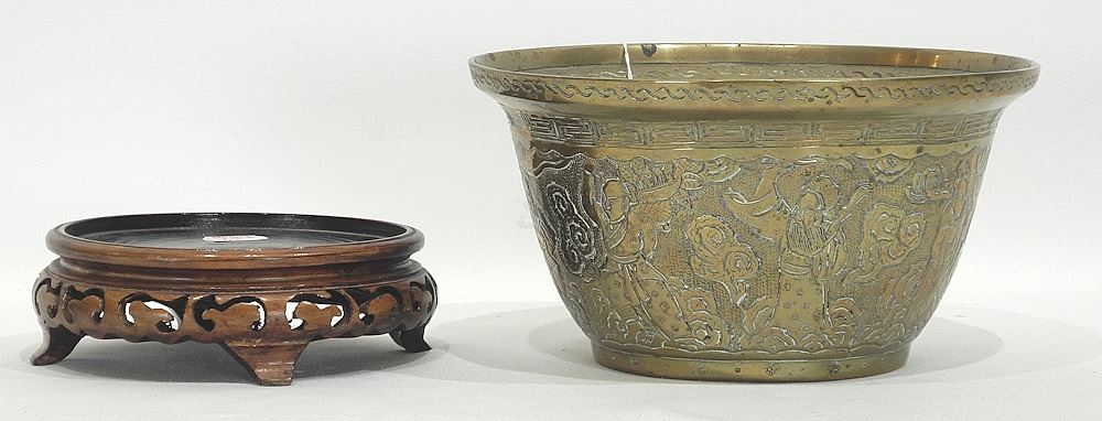 Two Chinese Brass Bowls, One with Xuande Mark, 7 1/4 & 11 7/8" Diam., with Stands.