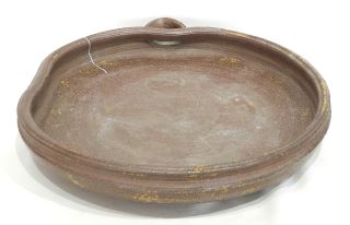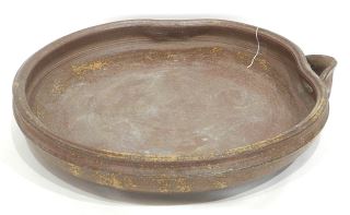 LOT 57 Japanese Bizen Yaki Spouted Low Dish, signed, 16 1/2"w. Estimate: $60 - $100 Sold For: $50 Auction Date: Tuesday, July 29 2025 at 4:00 PM