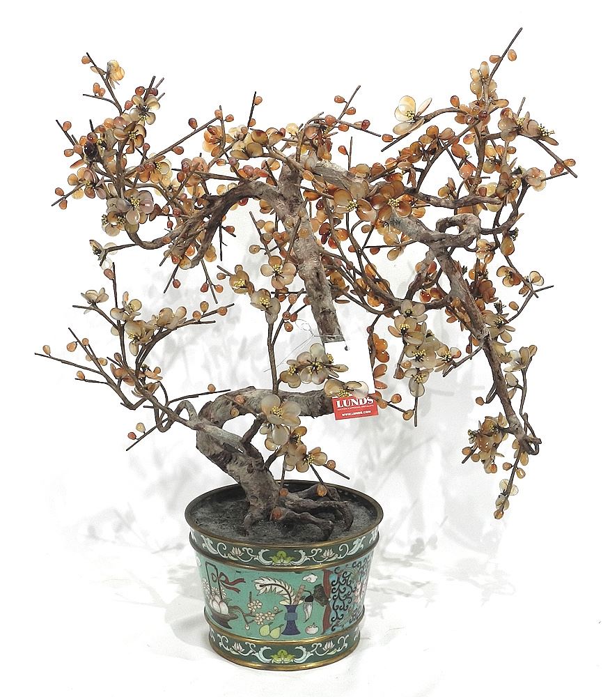 LOT 37 Chinese Agate Flower Arrangement in Cloisonne Pot, Approximately 21"h. Estimate: $200 - $300 Sold For: $275 Auction Date: Tuesday, July 29 2025 at 4:00 PM