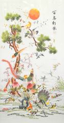 Chinese Silk Embroidery Panel, Framed, 41 1/2 x 22 3/4".