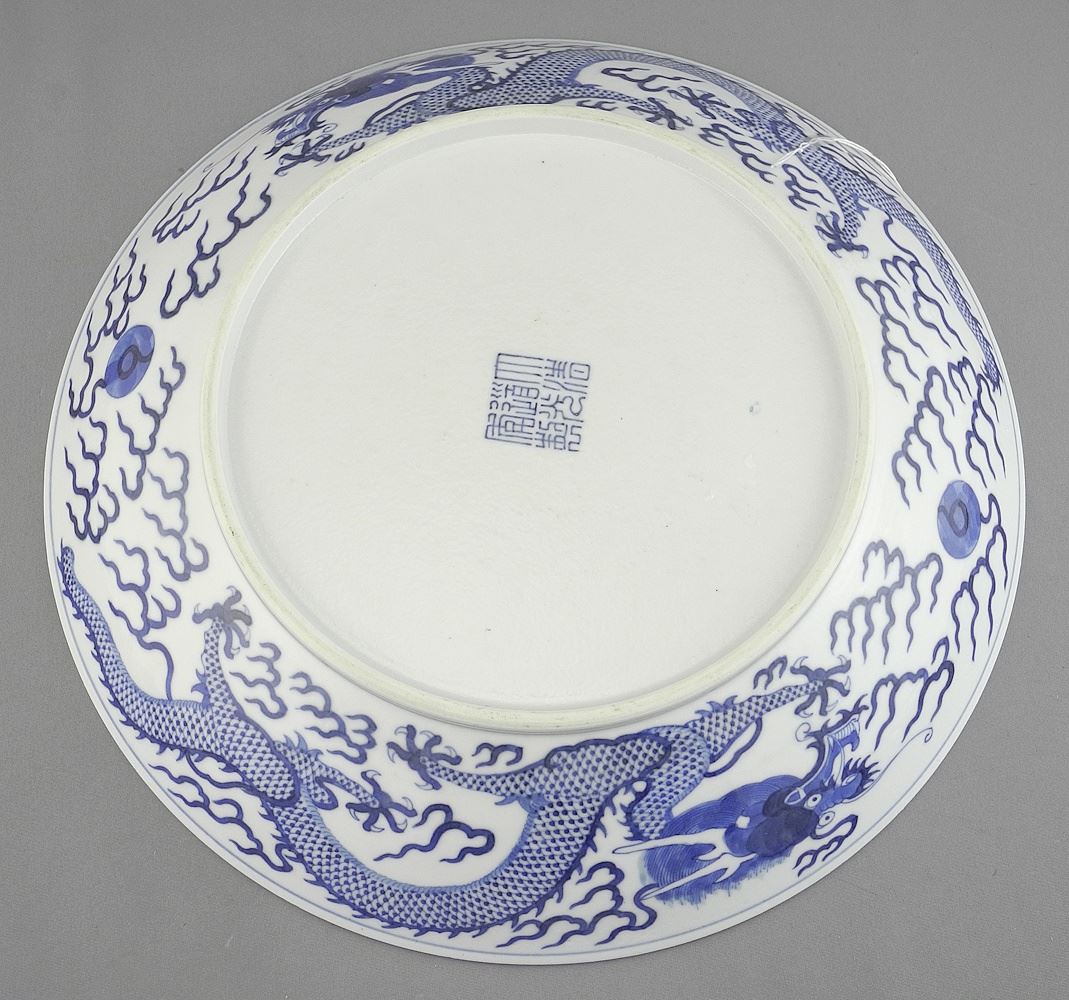 Chinese Blue & White Porcelain Dish, Daoguang Mark, 10 1/2" Diameter.