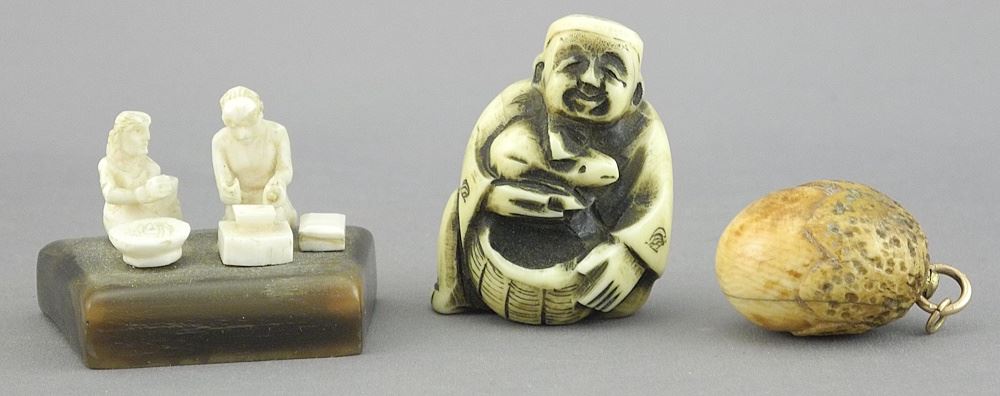 Nine Various Asian Figures Incl: Netsuke, Buddha etc., 1 - 2 3/4"h, NO EXPORT.