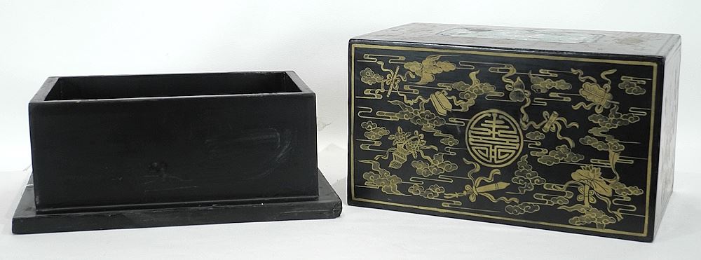 Chinese Cloisonne Inset & Giltwood Sutra Box, 7 1/4 x 12 x 8 1/8".