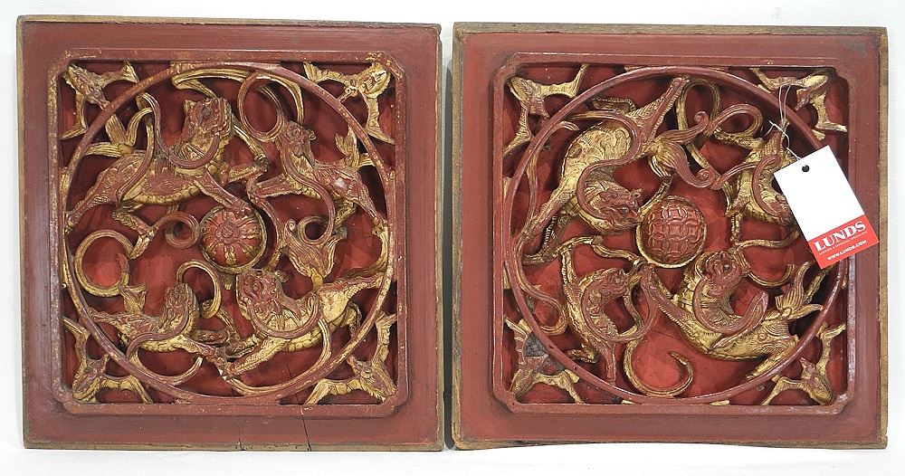 LOT 99 Four Chinese Gilt Scarlet Lacquer Architectural Panels. Estimate: $60 - $100 Auction Date: Tuesday, July 29 2025 at 4:00 PM