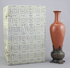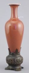 LOT 261 Chinese Porcelain Willow Leaf Peach Bloom Vase, Kangxi Mark, 7 1/8"h, with Stand. Estimate: $600 - $700 Auction Date: Tuesday, July 29 2025 at 4:00 PM