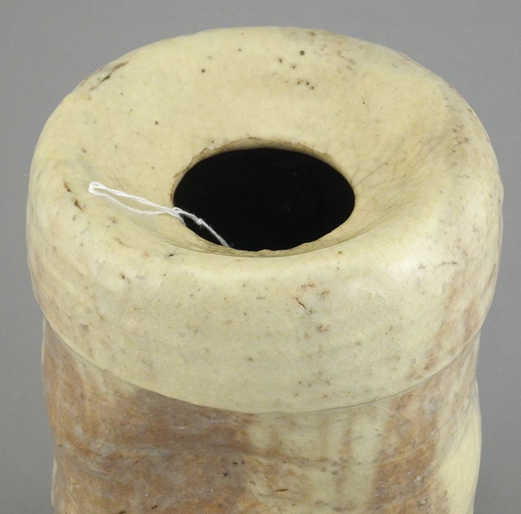 Japanese Stoneware Vessel with Bronze Mount, 6 1/4"h.