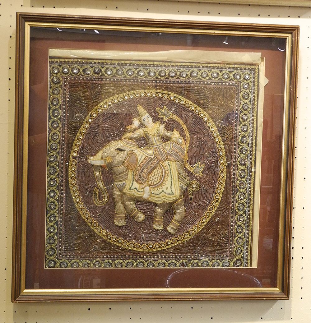 Two Burmese Kalaga Panels, Framed, 21 x 21" & 20 x 20".