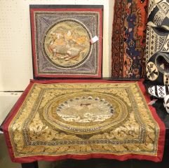 LOT 130 2 Burmese Kalaga Panels, Framed & Unframed, 22 1/2 x 22 1/2" & 36 x 38 ". Estimate: $60 - $100 Sold For: $30 Auction Date: Tuesday, July 29 2025 at 4:00 PM