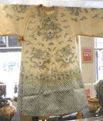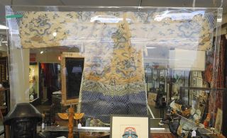 Qing Mandarin 10 Dragon Yellow Silk Robe, 44"h, Lucite Cased (condition noted).