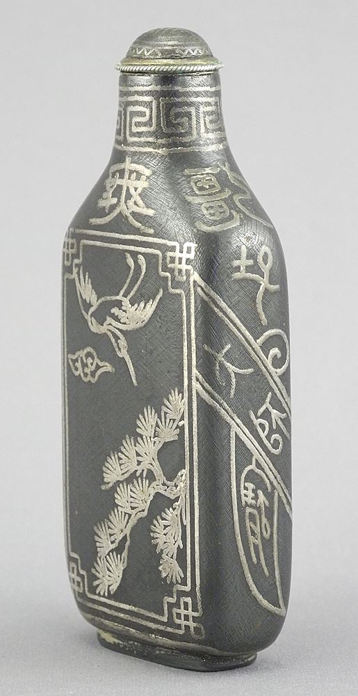 Chinese Inlaid Bronze Snuff Bottle, 3 3/4"h, 81.6g.