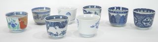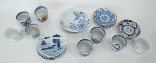 Collection of Japanese Blue & White Imari Porcelain Cups & Saucer Dishes