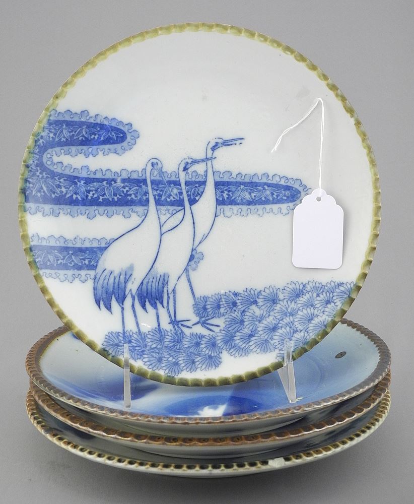 Eight Japanese Blue & White Imari Porcelain Brown Edge Dishes, 8 1/2" Diameter (one chipped).