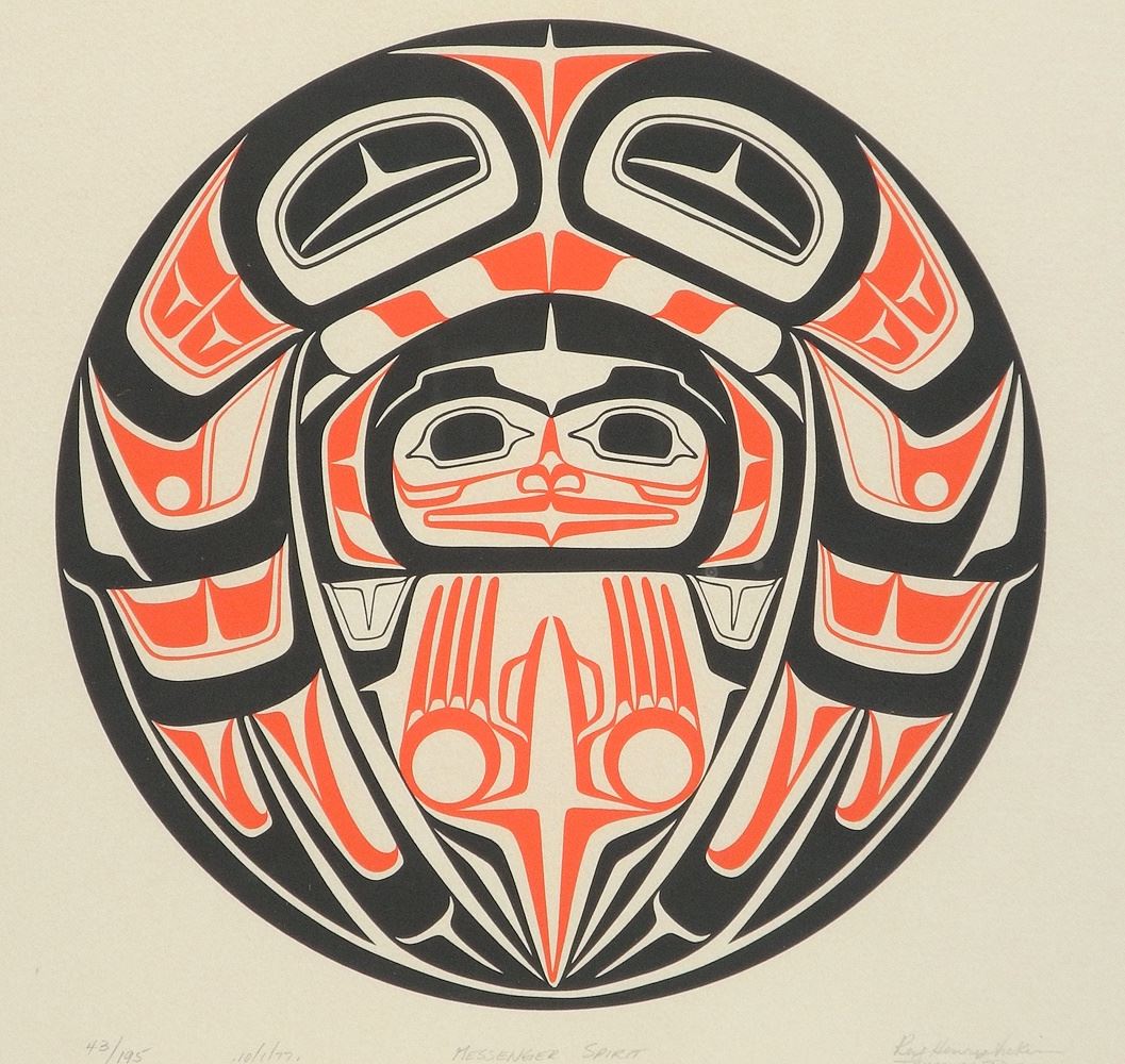 LOT 66 Serigraph signed Roy Henry Vickers, 14 x 14 1/4", "Messenger Spirit" 10/1/77 #43/195. Estimate: $150 - $200 Sold For: $170 Auction Date: Tuesday, July 29 2025 at 4:00 PM