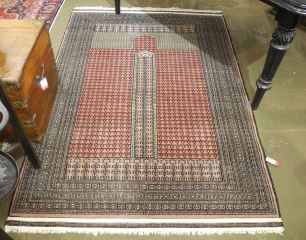 LOT 103 Hand Knotted Prayer Mat Approximately 4'2" x 6'3". Estimate: $150 - $200 Sold For: $130 Auction Date: Tuesday, July 29 2025 at 4:00 PM