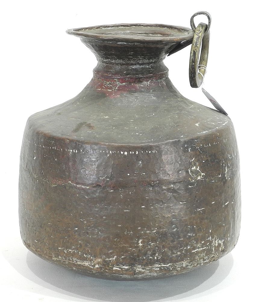 South Asian Copper Alloy Water Pot, 12 3/4"h (as found).