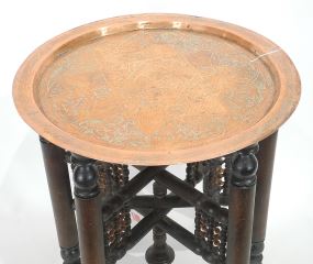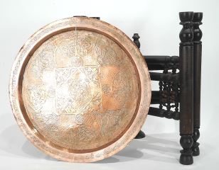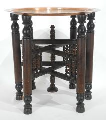 LOT 50 Syrian Turned Wood & Copper Folding Tray Table, 16 5/8"h. Estimate: $50 - $60 Sold For: $45 Auction Date: Tuesday, July 29 2025 at 4:00 PM