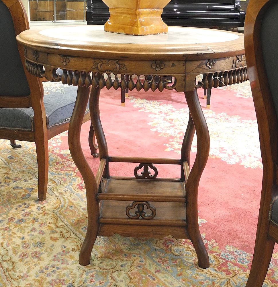 LOT 39 Chinese Rosewood Stone Inset Center Table, 31 1/2"h (crack noted). Estimate: $200 - $300 Auction Date: Tuesday, July 29 2025 at 4:00 PM