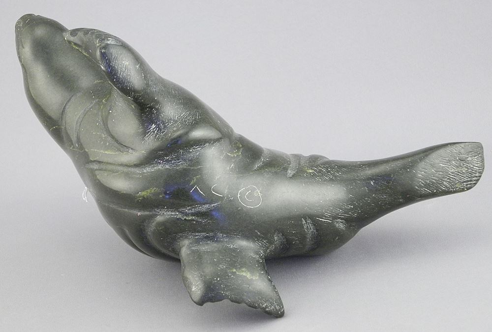 LOT 75 Inuit Stone Sculpture signed with Syllabics, 8 1/2"L, "Seal", Acquired NWT Early 70's. Estimate: $60 - $100 Sold For: $120 Auction Date: Tuesday, July 29 2025 at 4:00 PM