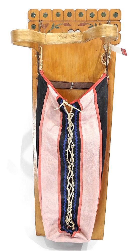 Ojibwe Dakonaagan Cradle Board, 33 1/2"h.