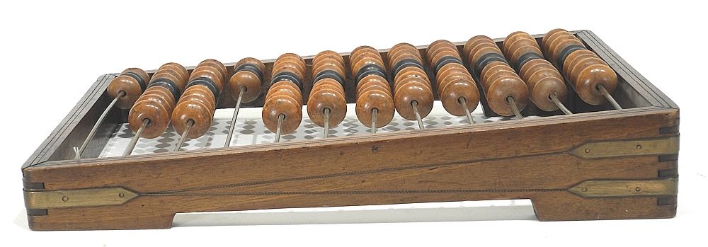 19th C. Brass Inlaid Mahogany Abacus , 3 x 17 1/2 x 11 1/2".