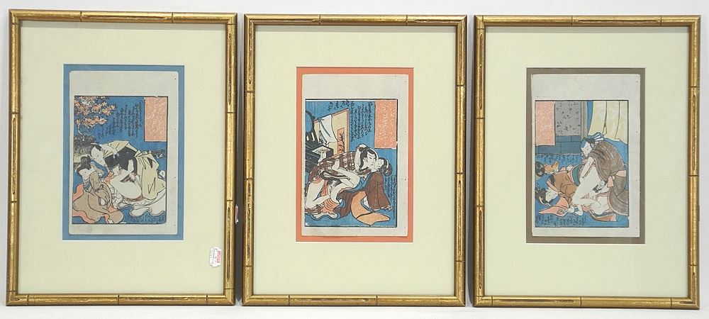 LOT 5 Five Japanese Shunga Woodblock Prints, 7 x 4 5/8". Estimate: $60 - $100 Sold For: $60 Auction Date: Tuesday, July 29 2025 at 4:00 PM