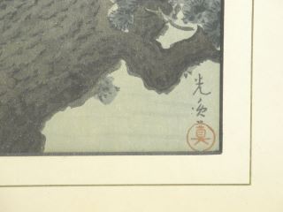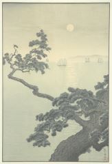 Woodblock Print by Tsuchiya Koitsu, 14 x 9 1/4", "Full Moon at Akashi Beach" (fading noted).