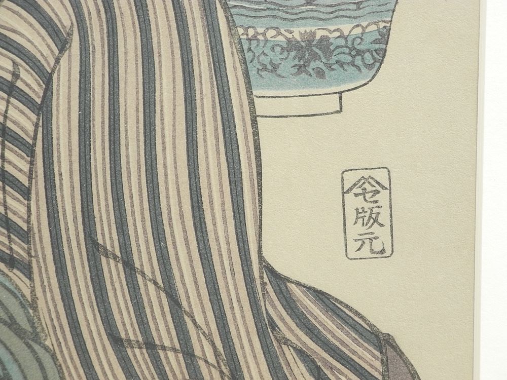 Woodblock Print Attributed to Keisai Eisen, 10 x 14 3/4", "Pipe Smokers".